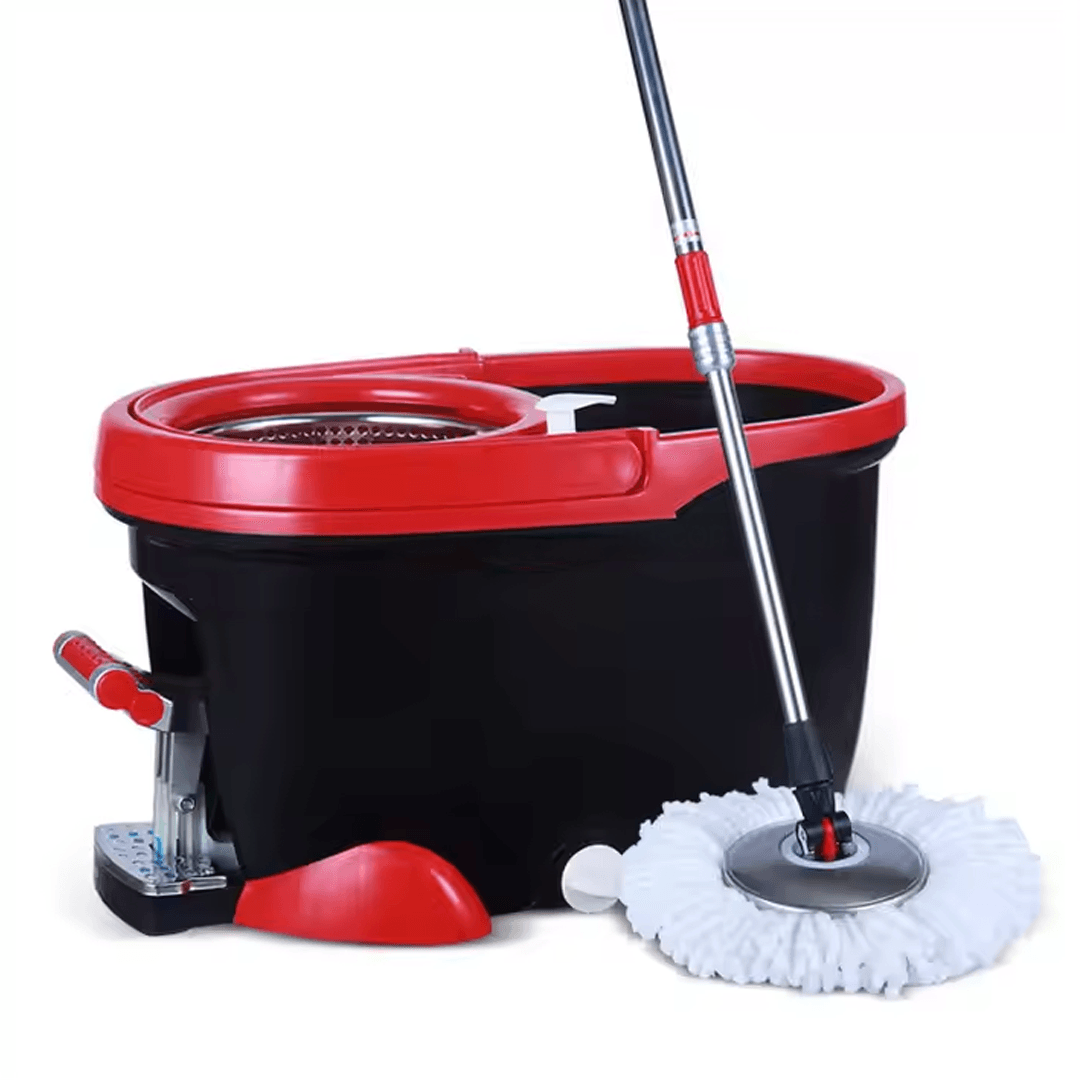 Este práctico set incluye balde con sistema de centrifugado y mopa giratoria, ideal para limpiar todo tipo de pisos de forma rápida y sin esfuerzo.